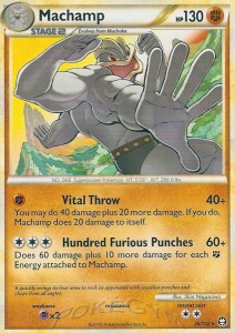 What it is– A secondary attack in a deck that runs Machamp Prime. His first attack costs 1 fighting energy, and either does 40 damage or 60 damage and 20 to Machamp. His second attack costs CCC and does 60 damage plus 10 more damage for each fighting energies attached to Machamp.